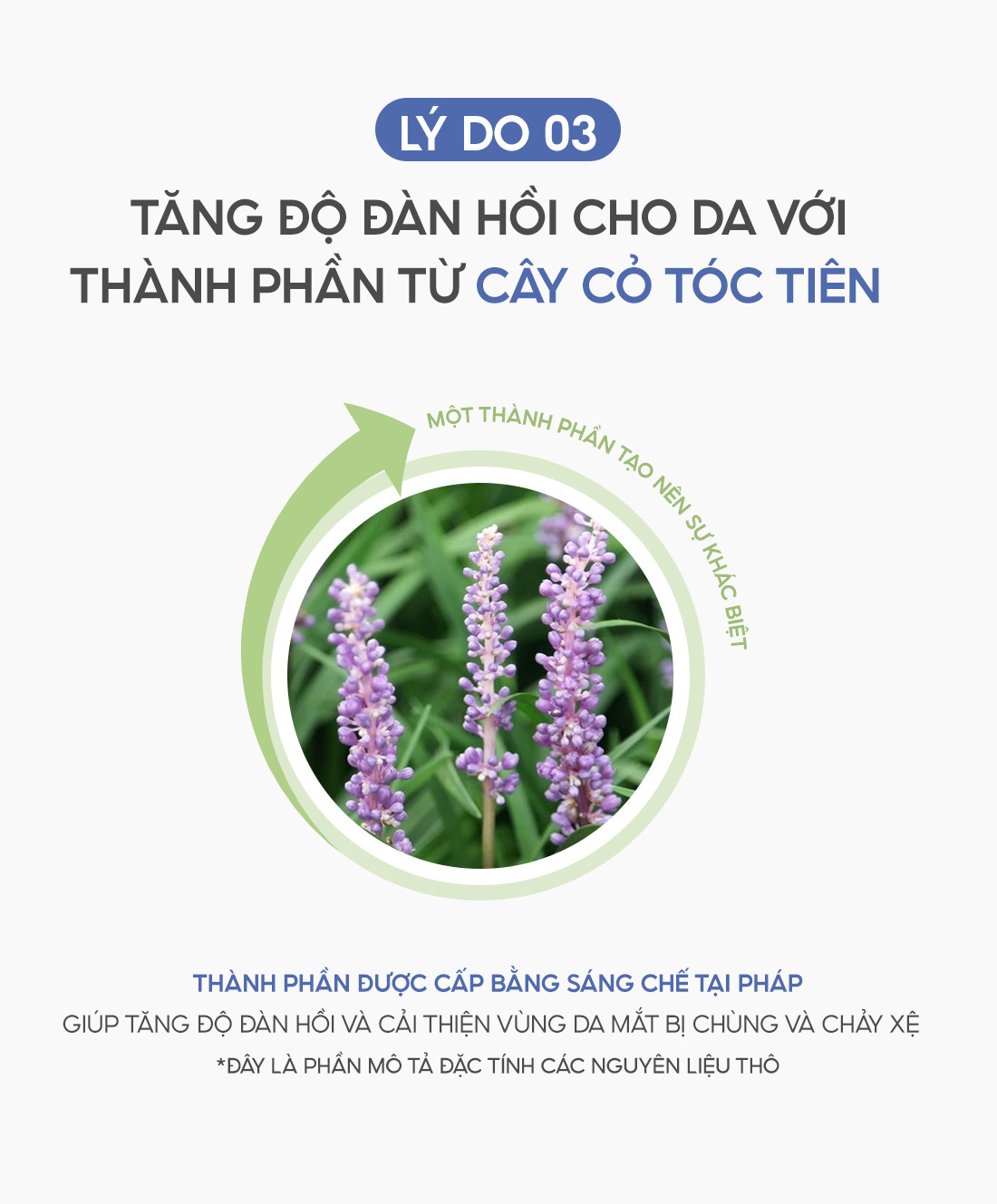 - Giúp giảm mọi dấu hiệu lão hóa trên vùng da quanh mắt như: Quầng thâm, bọng mắt, nếp nhăn, vết chân chim, da khô, da không đều màu và nám quanh mắt….