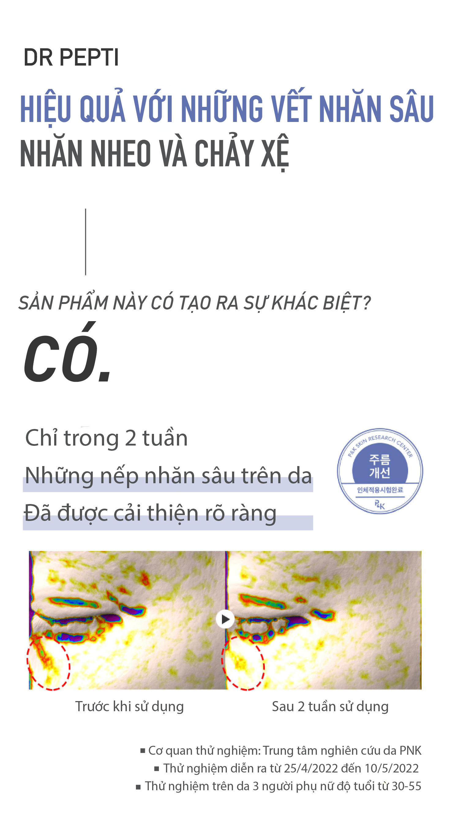 - Kích thích sản sinh collagen giúp làm đầy, làm mờ nếp nhăn, đốm nâu, vết chân chim nhanh chóng, trả lại làn da tươi trẻ